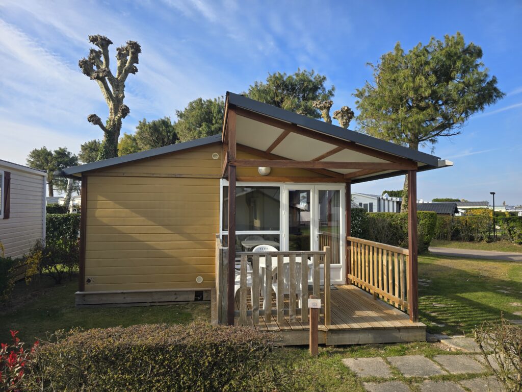 Logement tout équipé avec jardin privatif et parking. Situation privilégiée à l’entrée du camping, proche des activités et des piscines.