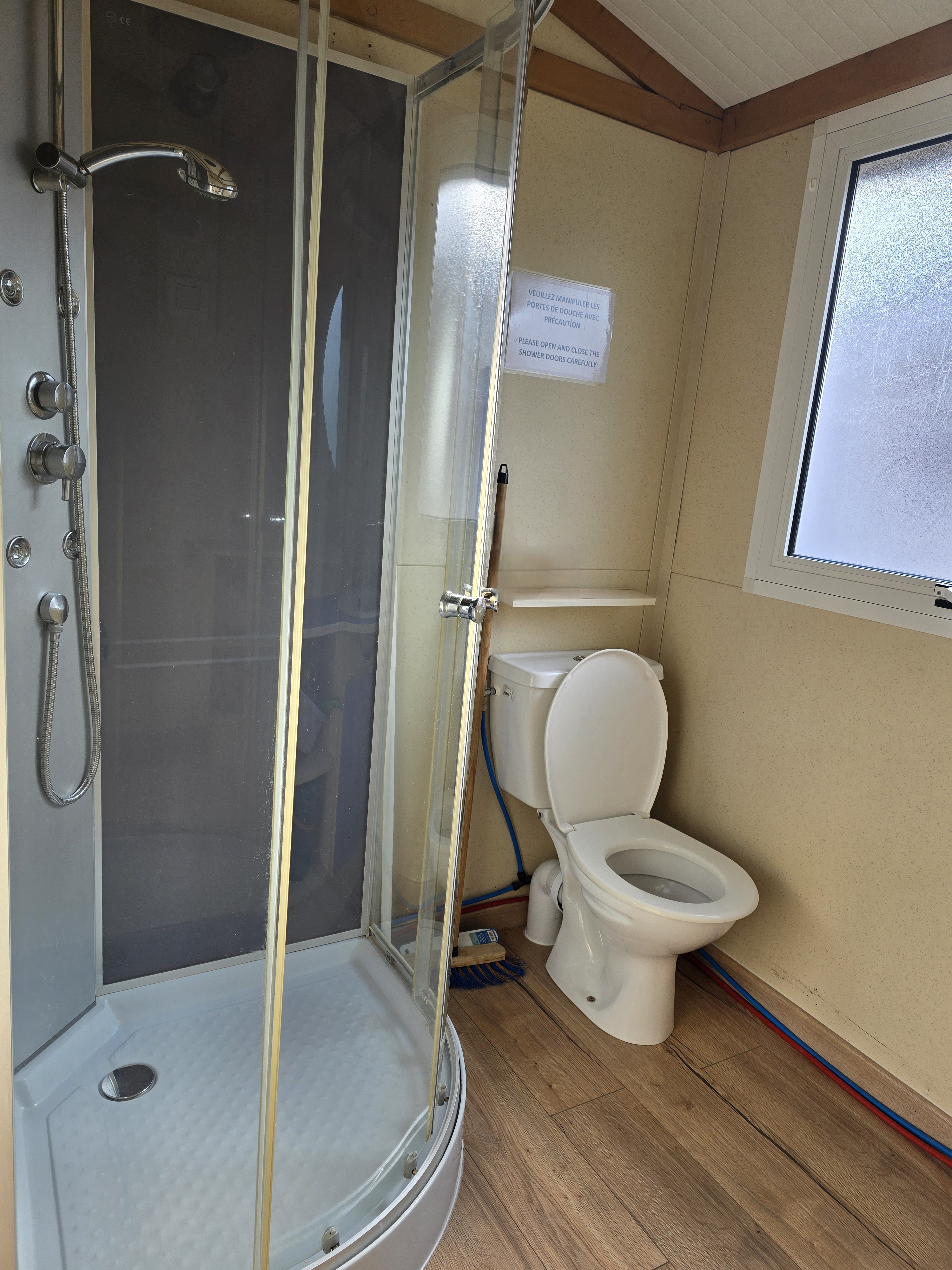 - Salle de douche avec douche, lavabo et WC