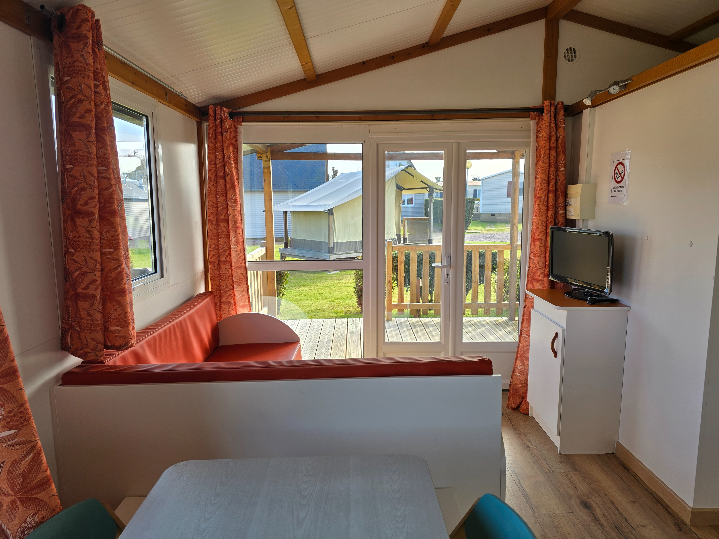 Logement tout équipé avec jardin privatif et parking. Situation privilégiée à l’entrée du camping, proche des activités et des piscines.